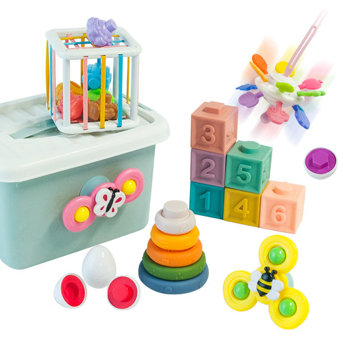 6-en-1 bebés educación temprana juguetes de plástico sonajero Pull-Up huevo a juego Head-Up entrenamiento transfronterizo 6-en-1 juegos caja de regalo EN71