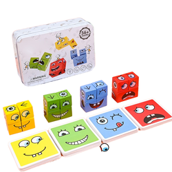Cubo de cambio de cara para niños, bloques de construcción, juguetes educativos, juego de batalla de escritorio interactivo para padres e hijos, de madera de 5 a 7 años