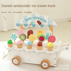 Zhitoys oyuncaklar Unisex interaktif eğitim ahşap mutfak seti ev simülasyon dondurma öğleden sonra çay okul öncesi oyun için Set